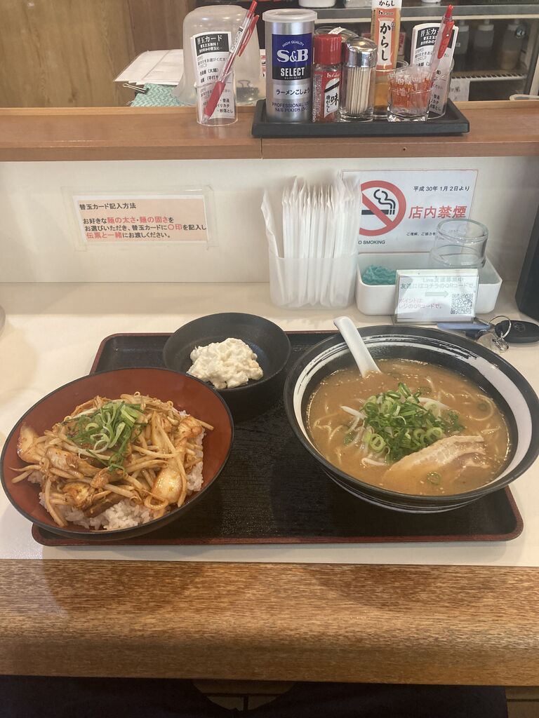 しかもラーメンは迷ったので、店員さんにおすすめを聞くと、今の気持ちを聞かれ、「こってり」と答えると迷いなく味噌ラーメンをお勧めされたので、味噌ラーメンをチョイス!